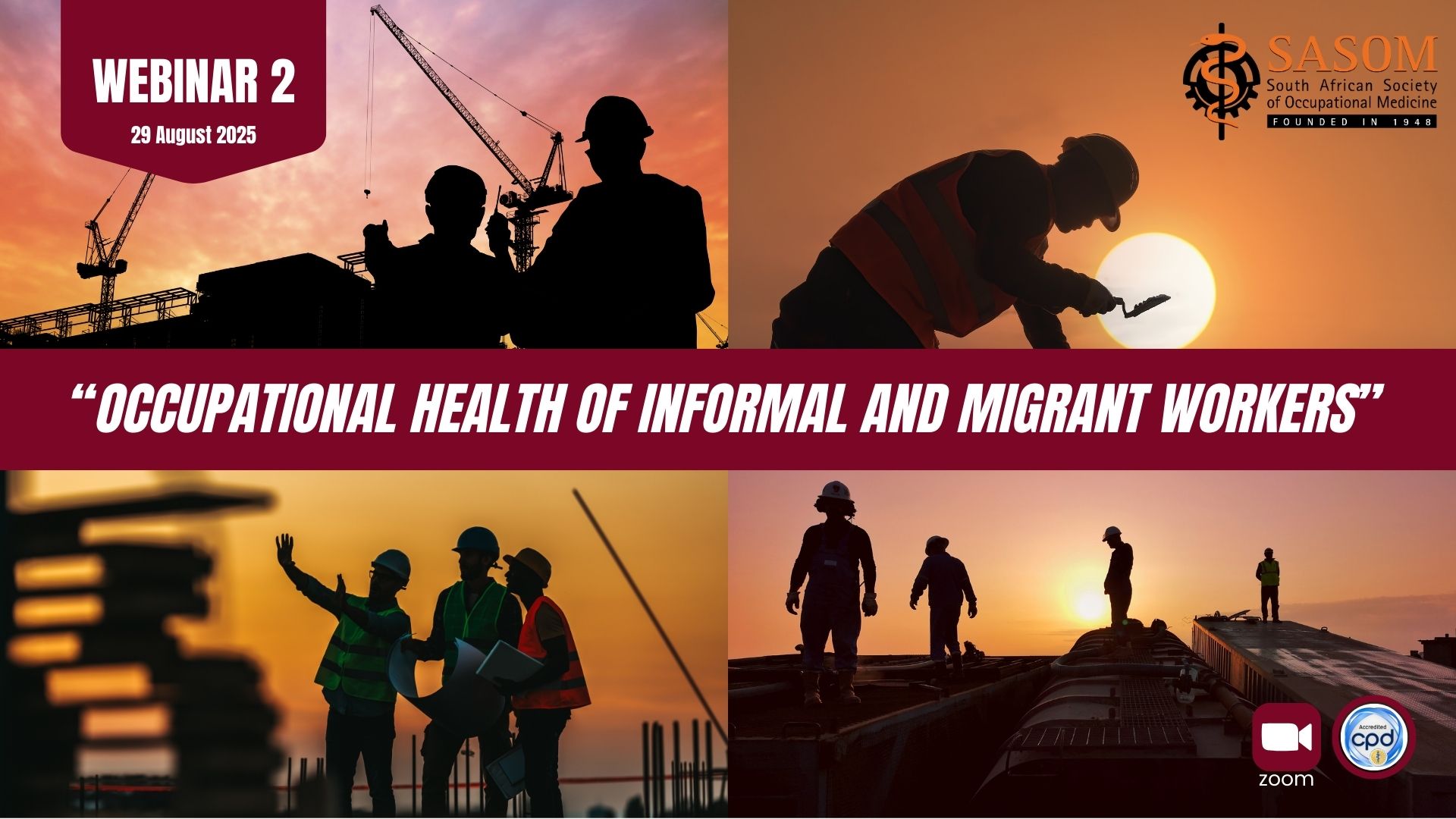SASOM invites you to a CPD-accredited national webinar on the Occupational Health of Informal and Migrant Workers, exploring challenges, solutions, and collective action. Featuring global experts, the session will award 4 HPCSA CEU points to HPCSA registered attendees, with certificates provided to non-HPCSA attendees.